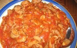 dupa 2-3 minute stingeti cu un pahar cu apa in care ati pus otetul. Lasati sa clocoteasca apoi 5 minute, strecurati sosul acesta peste bucatile de carne, puneti dupa gust bulion si dati vasul la cuptor, cu foc mic, pentru 30 de minute. -